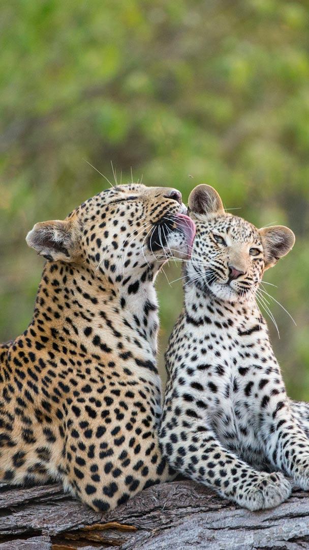 Leopard mother grooming her cub, Jao Reserve, Botswana © Suzi Eszterhas/Minden Pictures