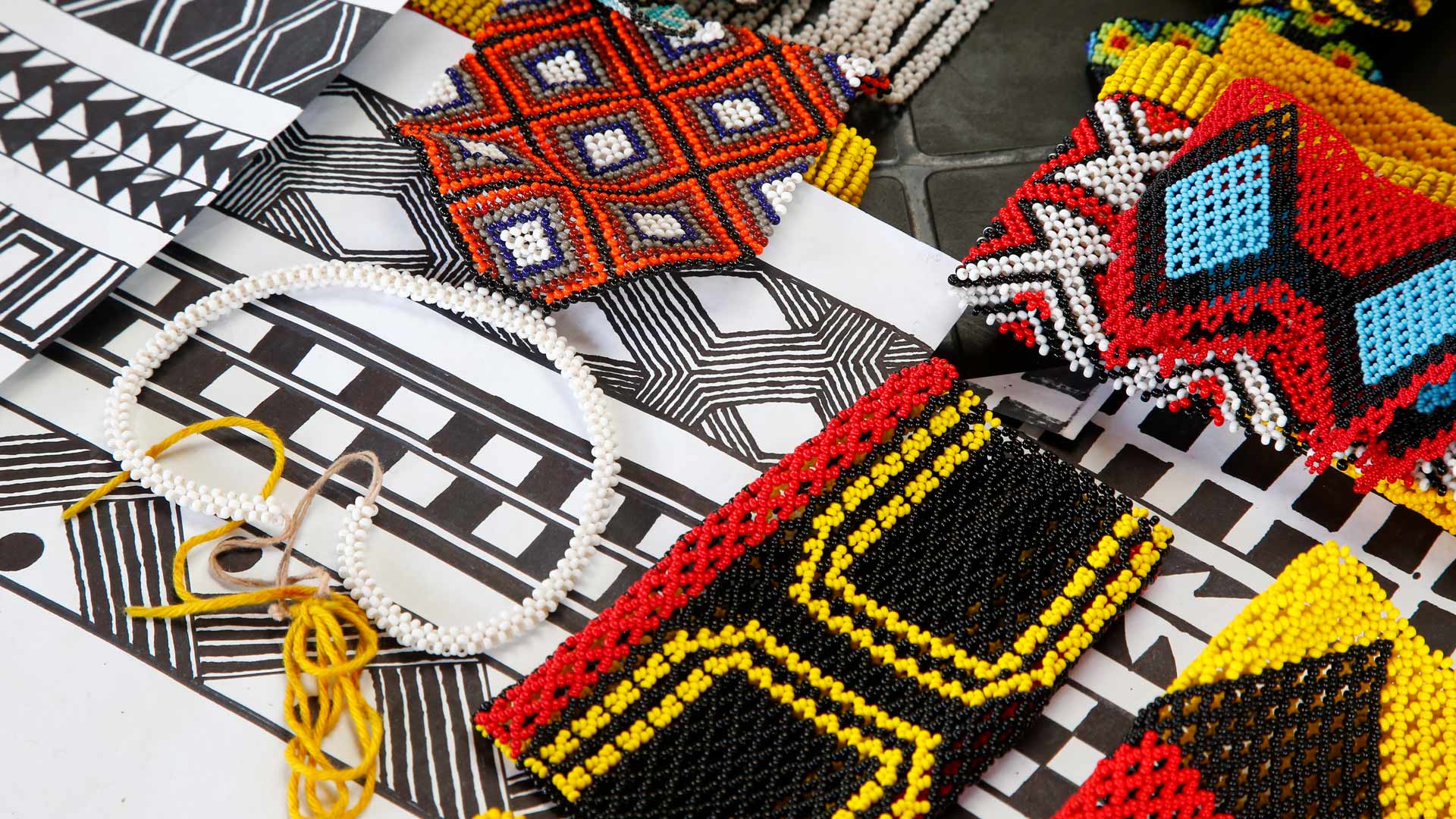 As cores do nosso folclore Artesanato indígena brasileiro exposto para venda em feira ao ar livre (© Ricardo Lima/Getty Images)