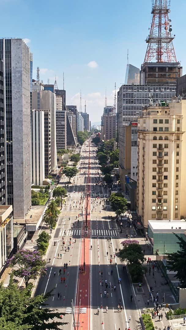 Dia de entrar em ação! Vista aérea da Avenida Paulista na cidade de São Paulo (© cifotart/Getty Images)