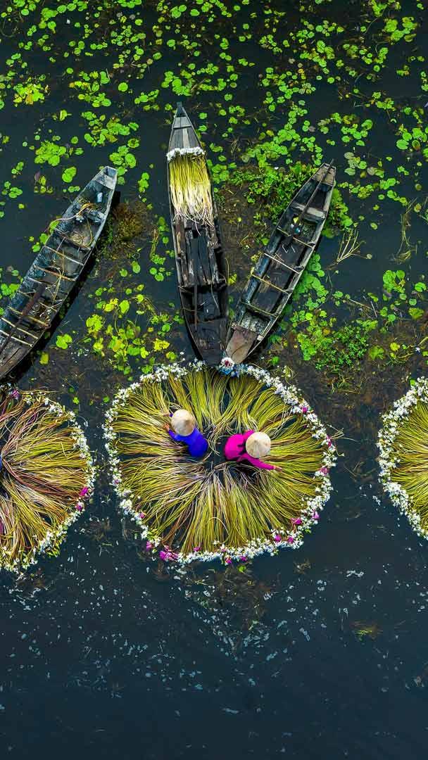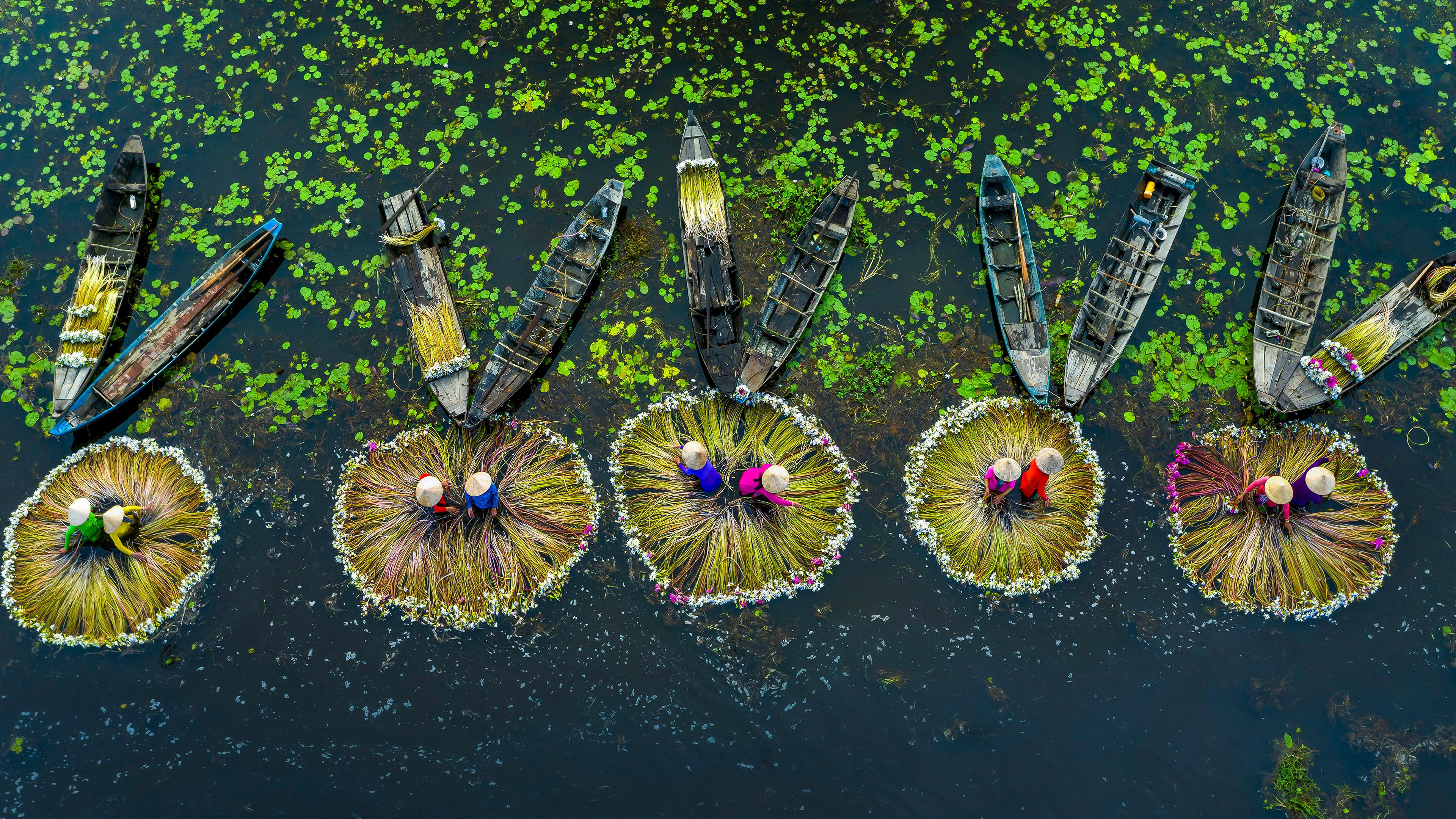 O trabalho em equipe torna o sonho realidade. Colheita de nenúfar, Delta do Rio Mekong, Long An, Vietnã. (© Khanh Phan/Solent News/Shutterstock)