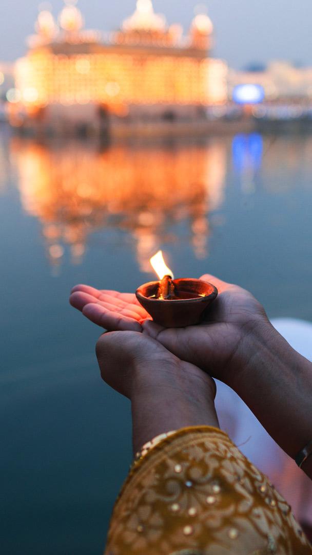 Tradições iluminadas Lamparina no Templo Dourado durante o Diwali, Amritsar, Índia (© EyeEm Mobile GmbH/Getty Images)