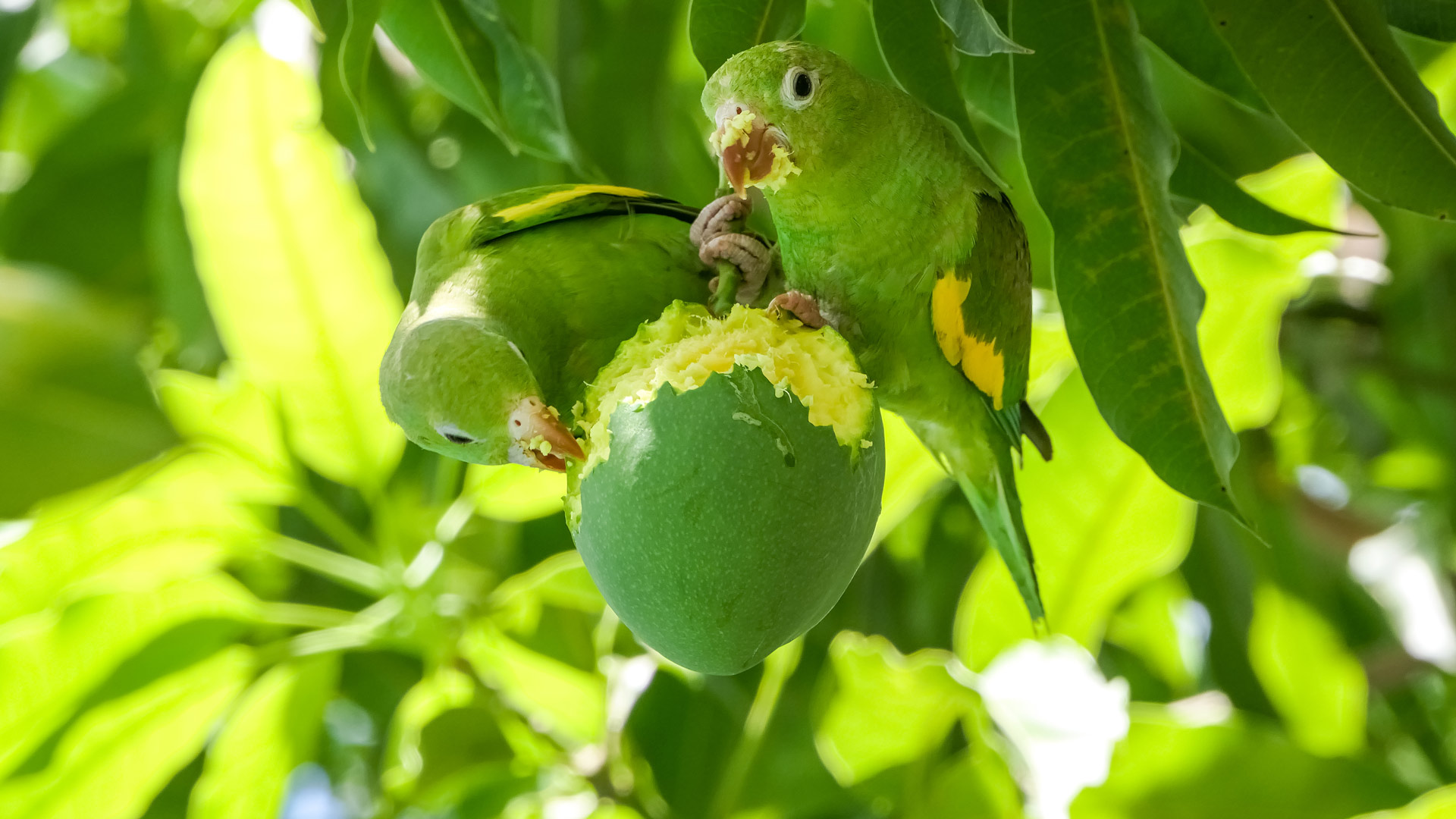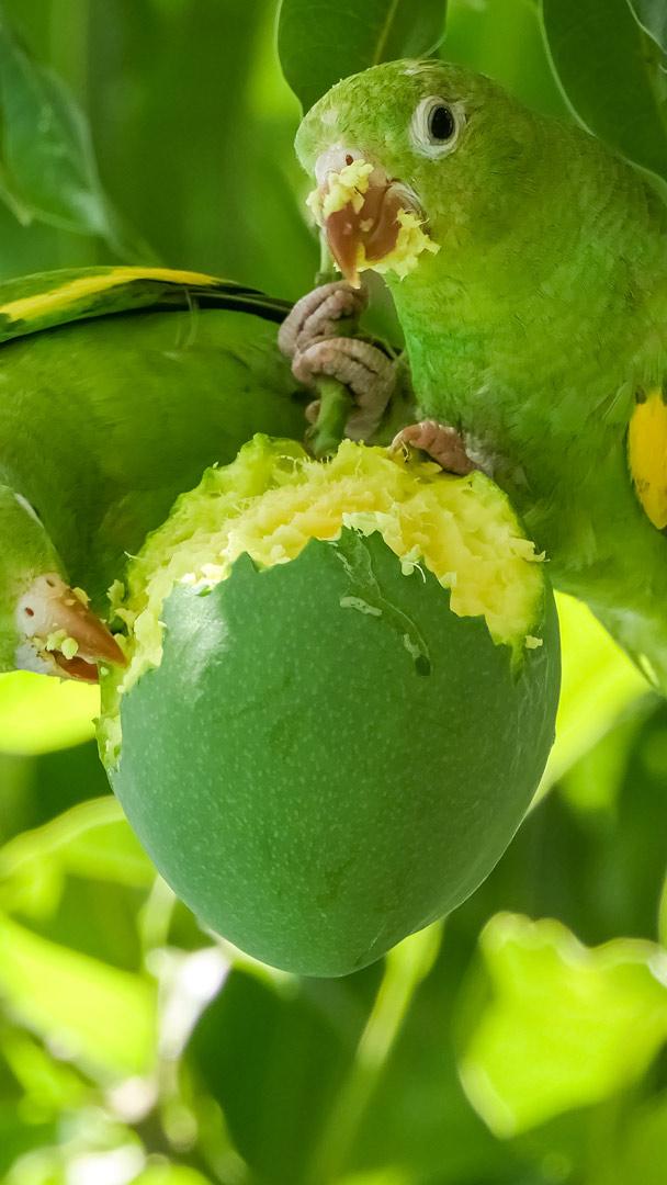 Cores do verão Periquito-de-encontro-amarelo em uma árvore de manga no Pantanal (© Uwe-Bergwitz/Getty Images)