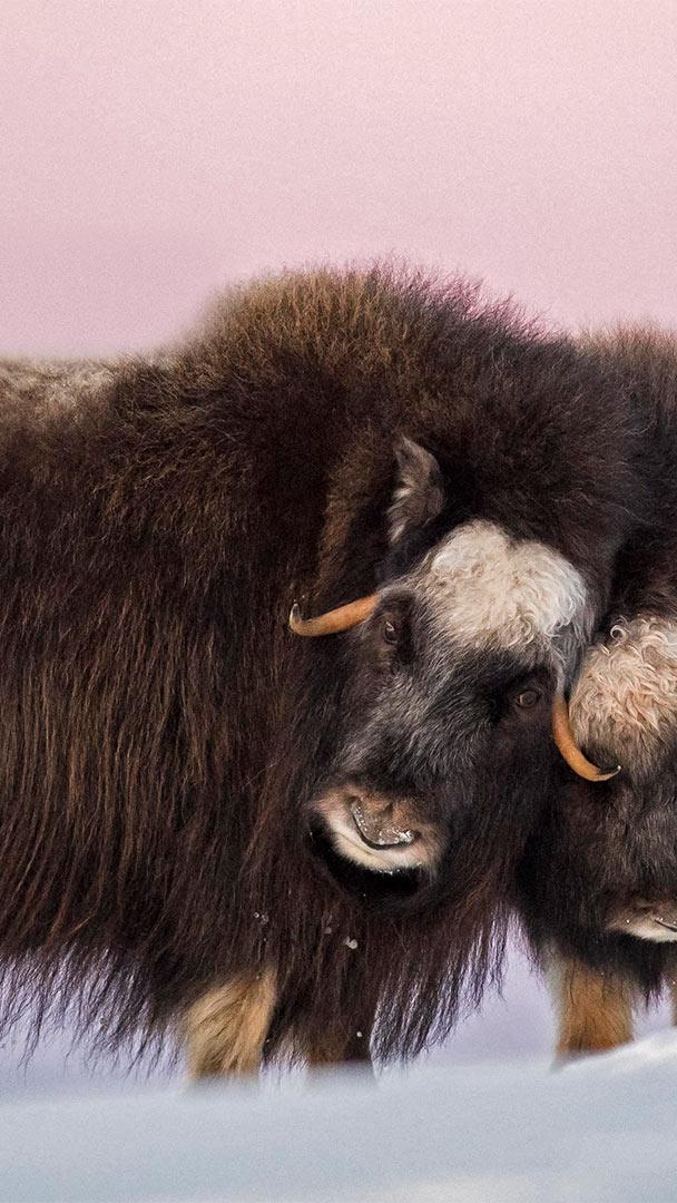 What are these ancient animals? Muskox mother and calf in Dovre-Sunndalsfjella National Park, Norway (© Robert Haasmann/Minden Pictures)