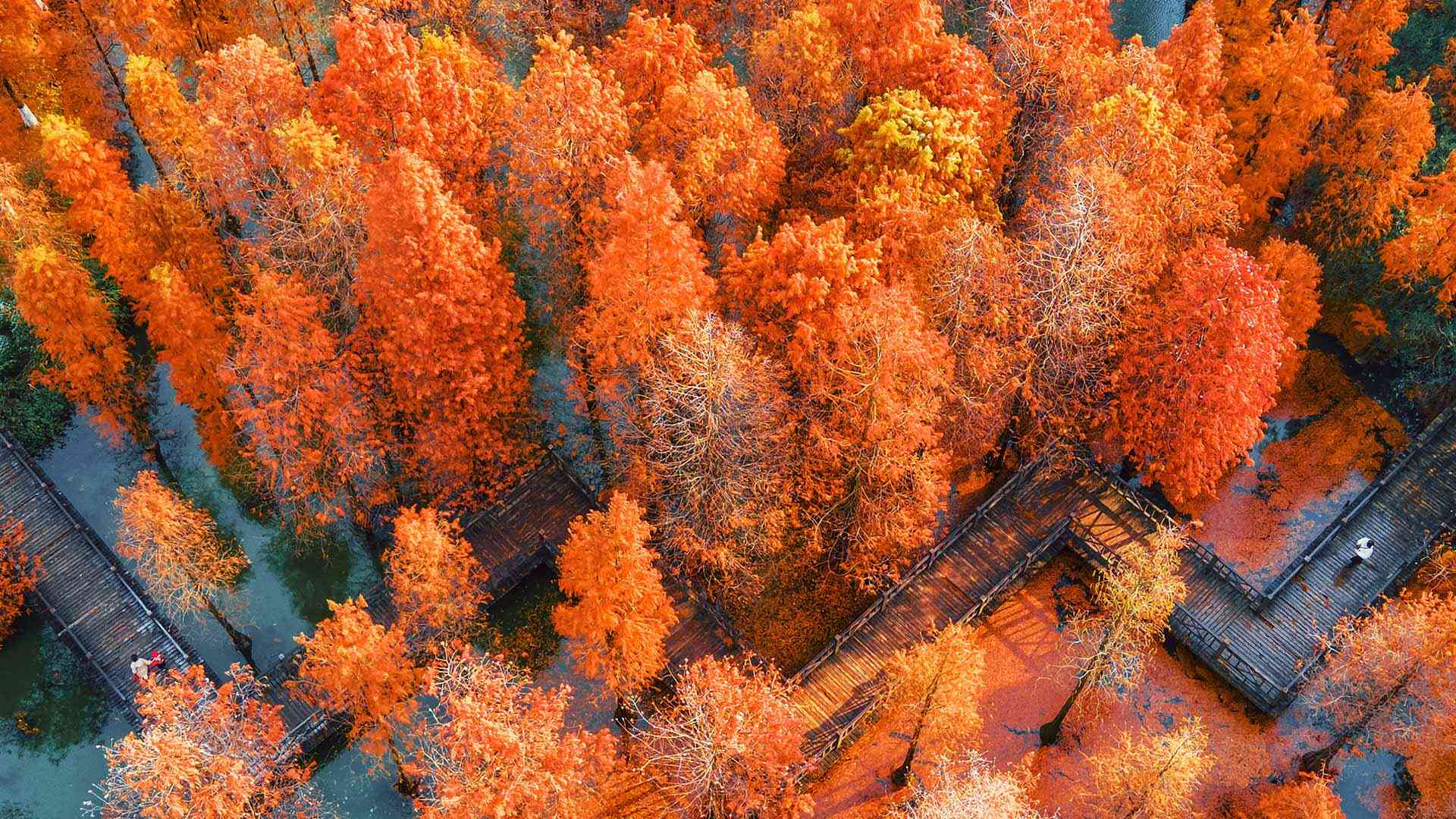 树树皆秋色 航拍中国江苏省常州翠竹公园 (© Xu Changyu/Getty images)