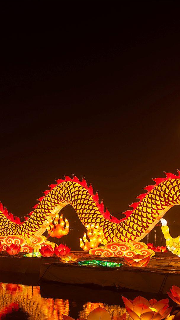 祝除夕团圆,新年顺遂! 庆祝春节的龙形灯笼,中国西安 (© Pan Hong/Getty Images)