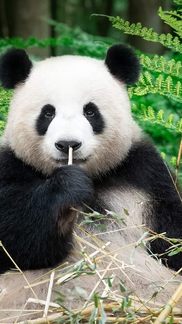 走进熊猫世界 正在吃竹子的大熊猫,中国 (© Entwicklungsknecht/Getty Images)