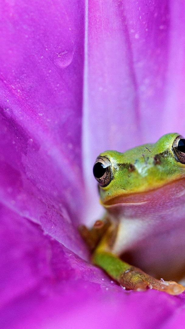 跃入四月 粉色牵牛花里的日本树蛙 (© Tetsuya Tanooka/Getty Images)