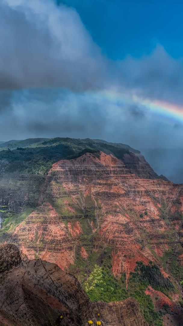 雨后见彩虹 威美亚峡谷和怀波奥瀑布上空的彩虹,考艾岛,夏威夷,美国 (© Beverley Van Praagh/Getty Images)