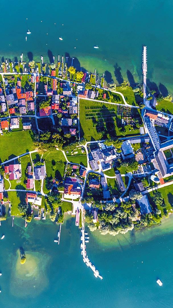 “巴伐利亚海”中的岛屿 基姆湖上的淑女岛,德国巴伐利亚州 (© Malorny/Getty Images)