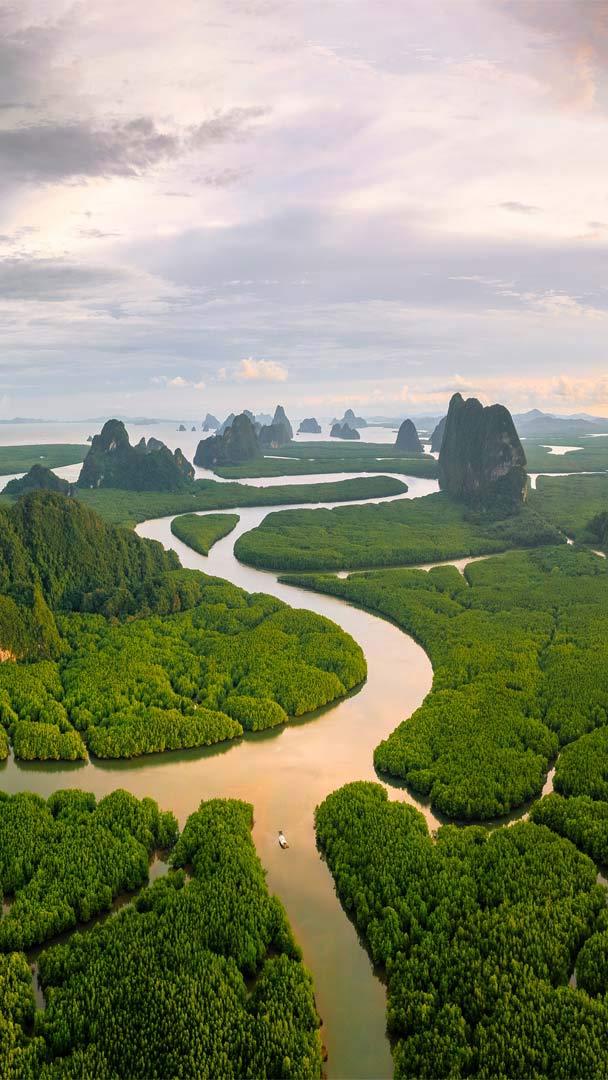 在热带,陆地与海洋热情相拥 攀牙湾安达曼海的红树林,泰国 (© Ratnakorn Piyasirisorost/Getty Images)
