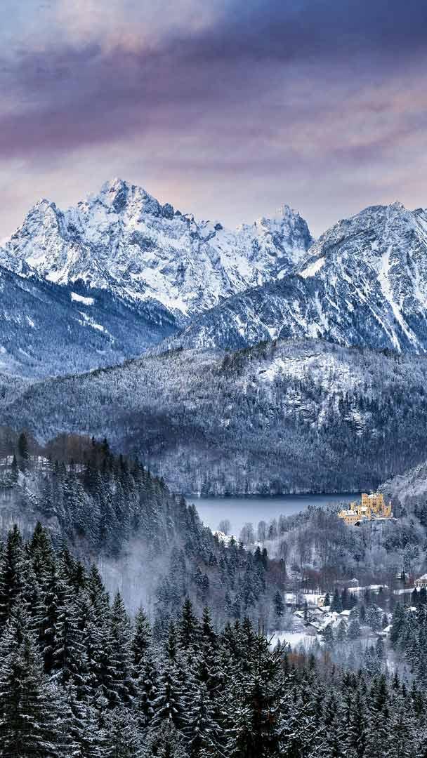 童话故事中的场景 天鹅堡和旧天鹅堡,巴伐利亚阿尔卑斯山,德国 (© Harald Nachtmann/Getty Images)