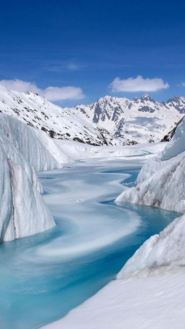 岌岌可危的冰川 勃朗峰上的冰海,夏慕尼,法国 (© Hagenmuller Jean-François/Hemis/Alamy)