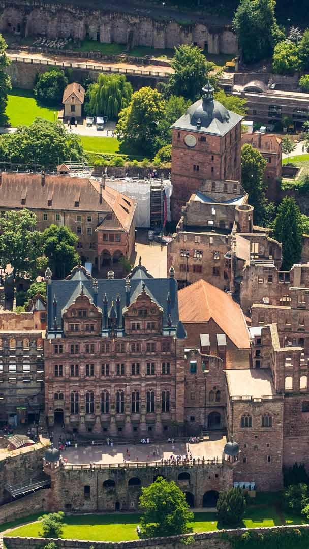 Das Heidelberger Schloss ist eine der berühmtesten Ruinen Deutschlands und ein bedeutendes Wahrzeichen der Stadt Heidelberg. Es thront malerisch über dem Neckartal und bietet einen atemberaubenden Blick auf die Altstadt und den Fluss. Erbaut im 13. Jahrhundert, erlebte das Schloss seine Blütezeit im 16. und 17. Jahrhundert, als es zur Residenz der Kurfürsten von der Pfalz wurde. Der Renaissancebau beeindruckt durch seine prachtvollen Fassaden und die weitläufigen Gärten.