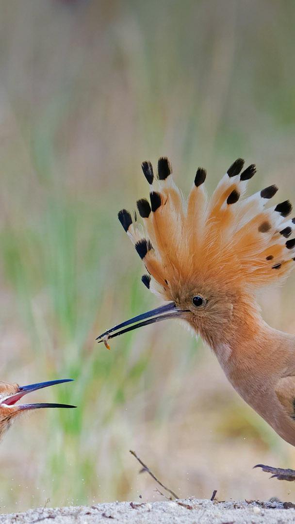 Vater und Sohn Wiedehopf füttert seine Jungen nach der Exkursion, Biosphärenreservat Mittelelbe, Sachsen-Anhalt (© imageBROKER/Martin Demmel/GettyImages)