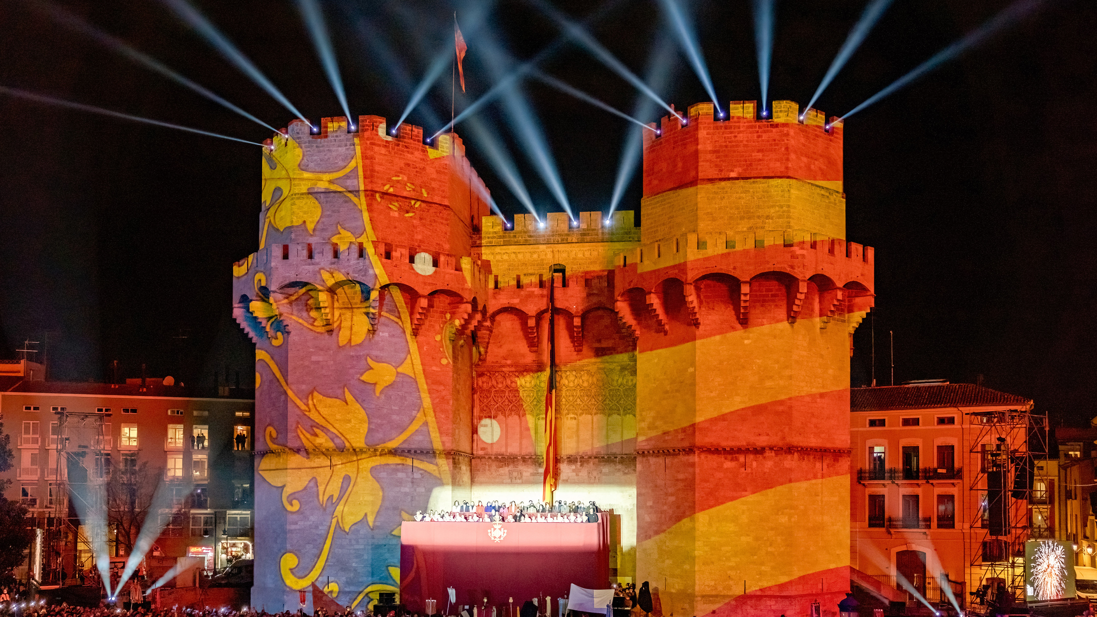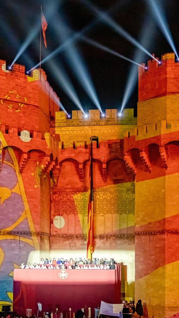 Vista de las Torres de Serranos durante La Crida de las Fallas, Valencia © SOPA Images/Getty Images
