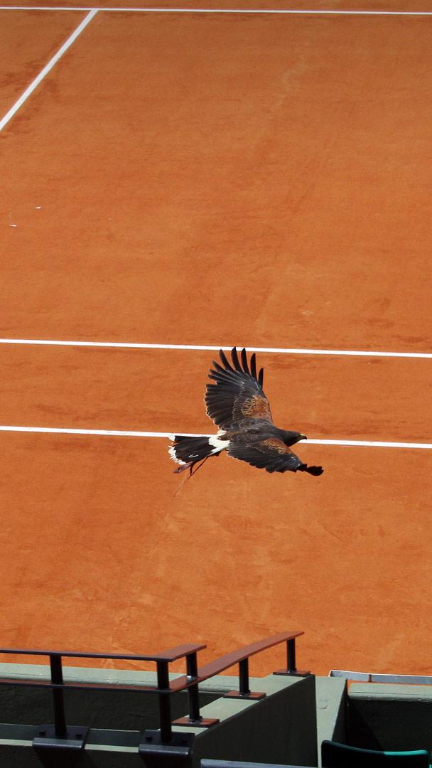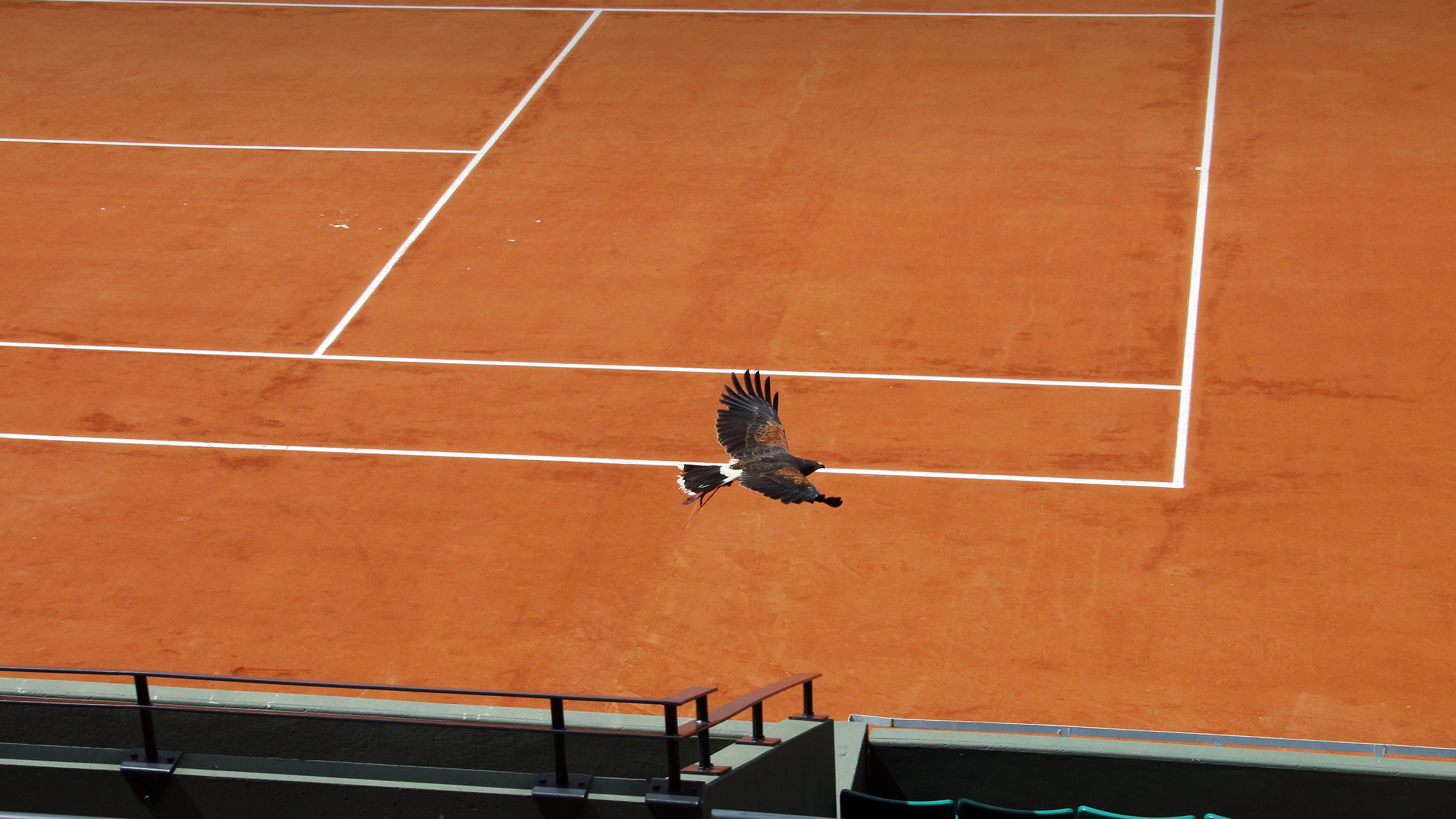 Sur la terre ocre du court Suzanne-Lenglen, un faucon de Harris plane au-dessus des lignes blanches. À Roland-Garros, ce n’est pas qu’un détail pittoresque : ces rapaces sont utilisés pour effrayer les pigeons, afin de préserver la propreté et la tranquillité des courts. Ils volent principalement lors des pauses ou avant l’ouverture du tournoi.