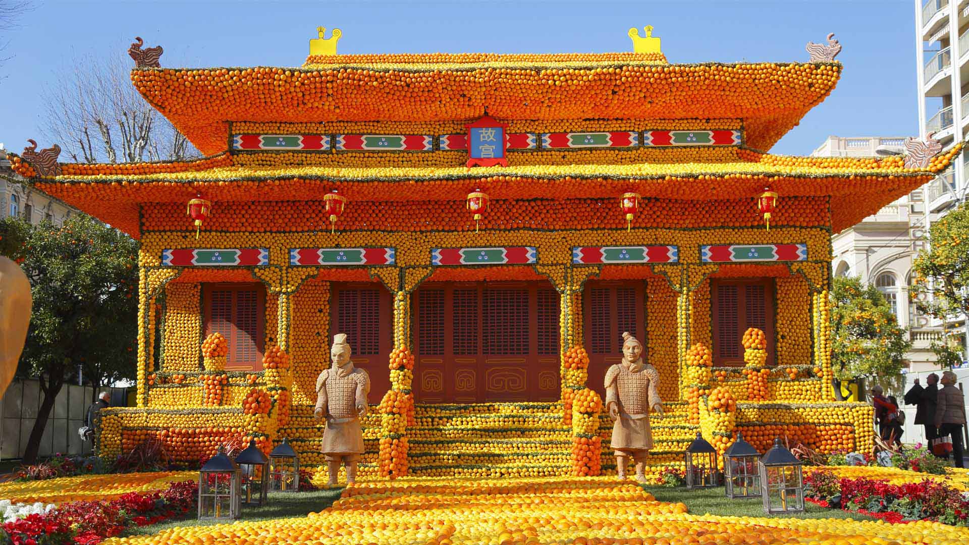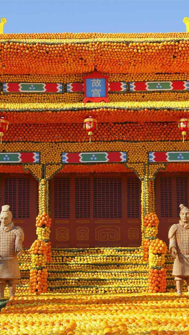 Un festival unique au monde ! Temple chinois Fête du Citron de 2015, Menton, Cote dAzur, France (© Peter Seyfferth/imageBROKER/Shutterstock)
