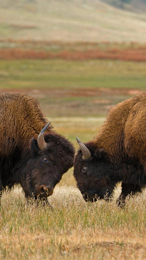 Sauvez les bisons ! Bisons d’Amérique dans le parc national de Wind Cave, Dakota du Sud, États-Unis (© Charlie Summers/Minden Pictures)