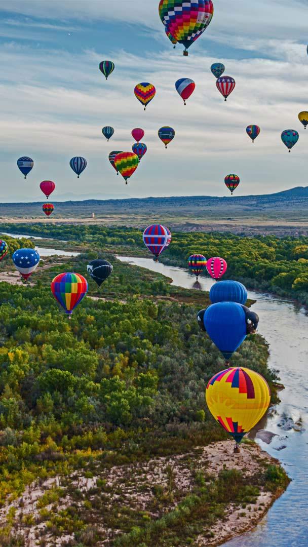 Des ballons dans l’air Montgolfières pour le festival international de montgolfières d’Albuquerque, Nouveau-Mexique, États-Unis (© gmeland/Shutterstock)
