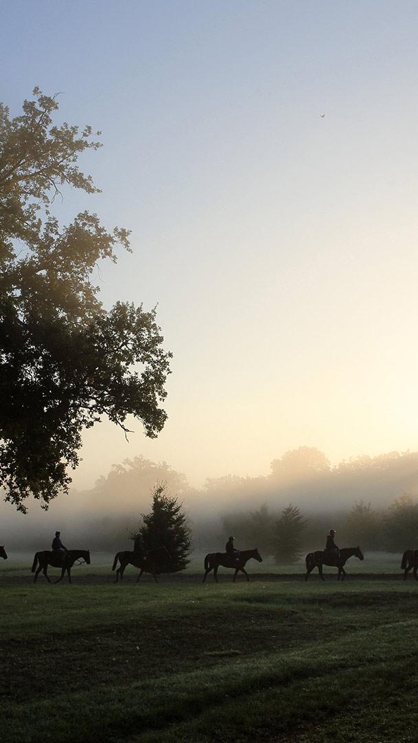 Au galop ! Cavaliers et leurs chevaux au petit matin, Chantilly, France (© Agencja Fotograficzna Caro/Alamy Stock Photo)