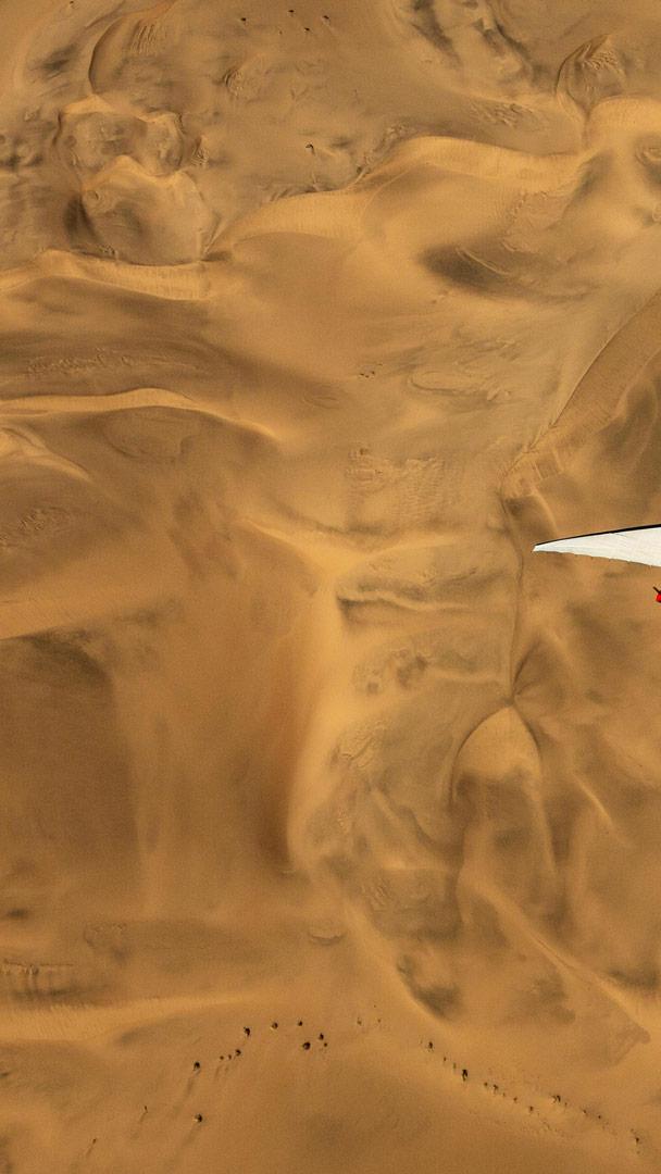 An ultralight aircraft flying over the sands of Namibia © Burt Johnson/Alamy Stock Photo