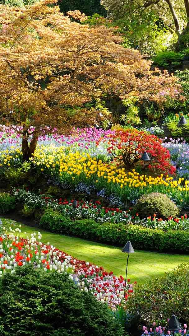 What began as an abandoned quarry over a century ago now transforms into a living colour wheel each spring. Butchart Gardens in Brentwood Bay, British Columbia, knows how to put on a bloom show. In spring, tulips scent the air, colour lines the paths and something new blooms around every turn. But it didn"t always look this way. In the early 1900s, Robert Pim Butchart operated a limestone quarry here. His wife, Jennie, saw potential in the depleted pit and began planting flowers in 1912. Now spread across less than half a square kilometre, the garden is home to more than 900 plant species—and each spring, almost 300,000 bulbs bloom.