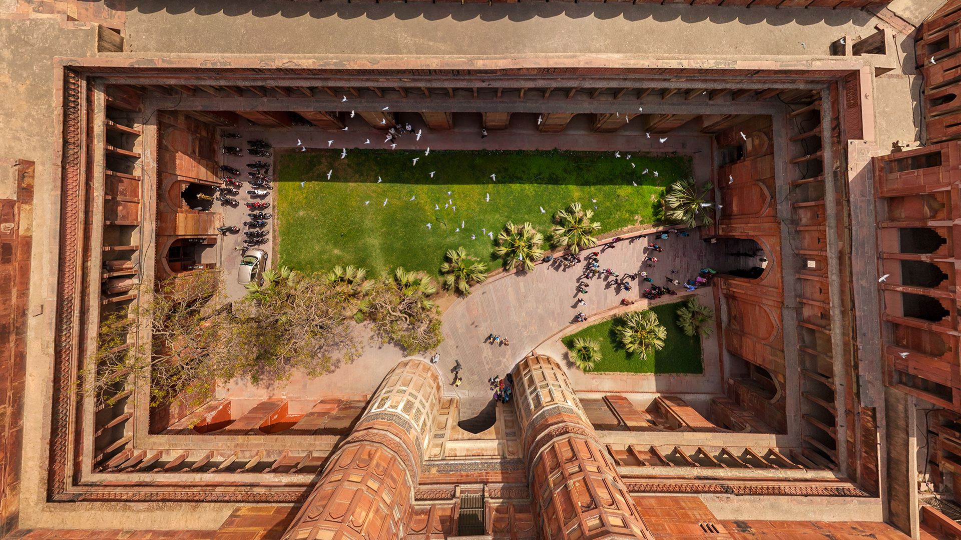 The picturesque Mughal architecture India Aerial view above of Agra Fort (© Amazing Aerial Premium/Shutterstock)