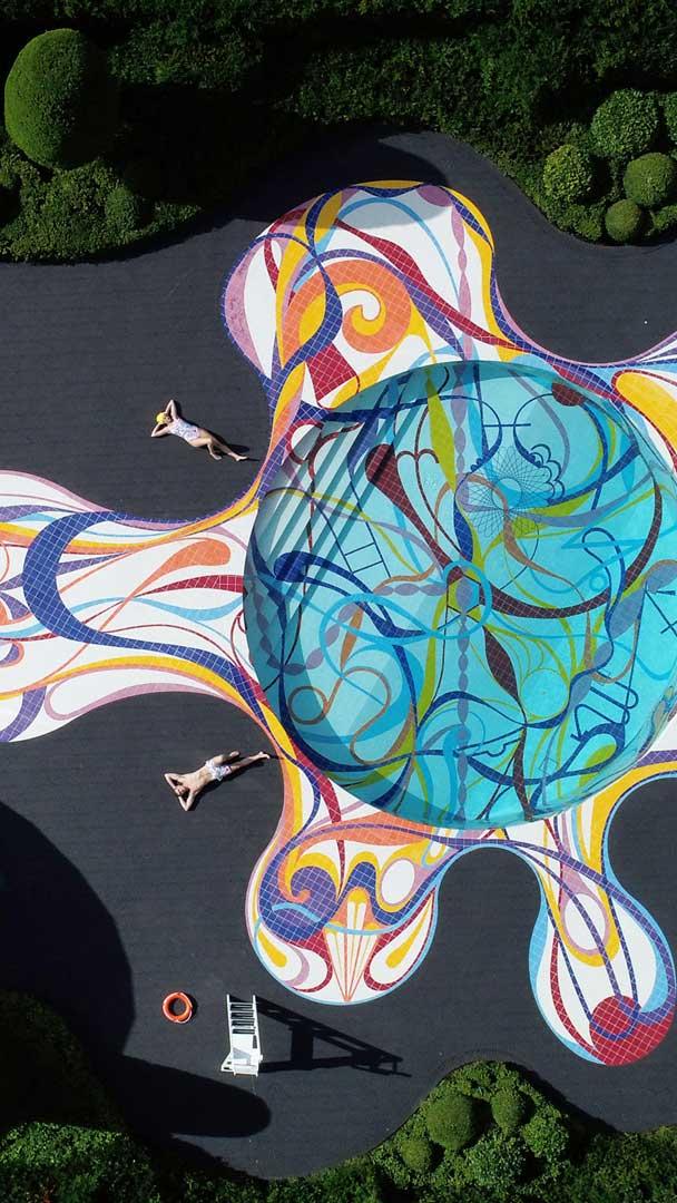 A one-of-a-kind splash Gateway pool at Jupiter Artland sculpture park, Edinburgh, Scotland (© Owen Humphreys/PA Images/Alamy)