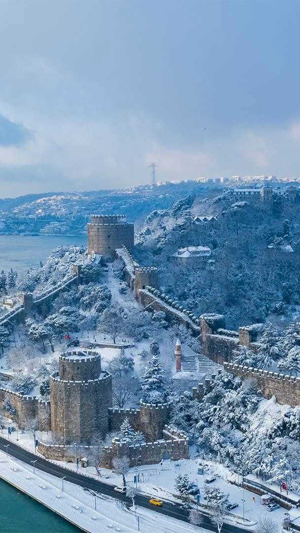 Where two continents meet Rumelihisarı on the Bosporus Strait at Istanbul, Türkiye (© Drone in Wonderland/Amazing Aerial Agency)