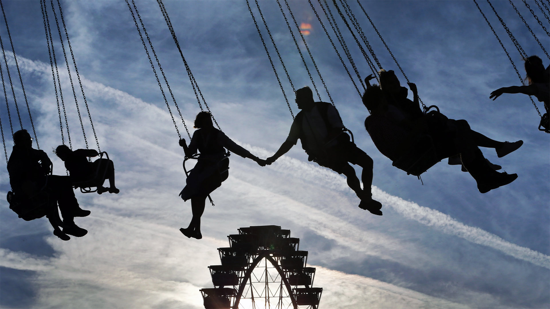 Swinging over Munich Oktoberfest visitors in Munich, Germany (© Karl-Josef Hildenbrand/Getty Images)