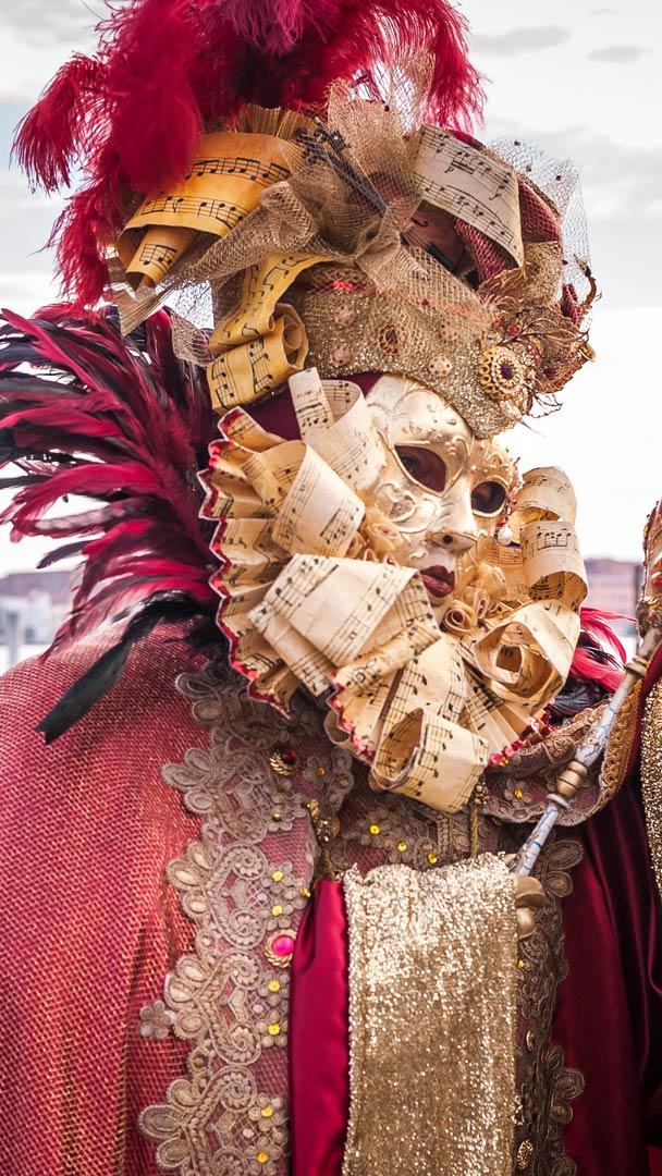 Che la Festa abbia inizio! Maschera veneziana con gondole sul retro, Venezia, Veneto (© Chiara Cattaruzzi Photography/Moment/Getty Images)