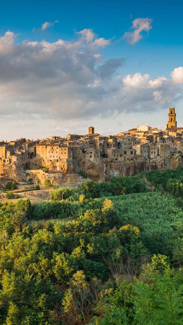 Un giro fuori porta? Pitigliano al tramonto, Provincia di Grosseto, Toscana (© Ivoha/Alamy Stock Photo)