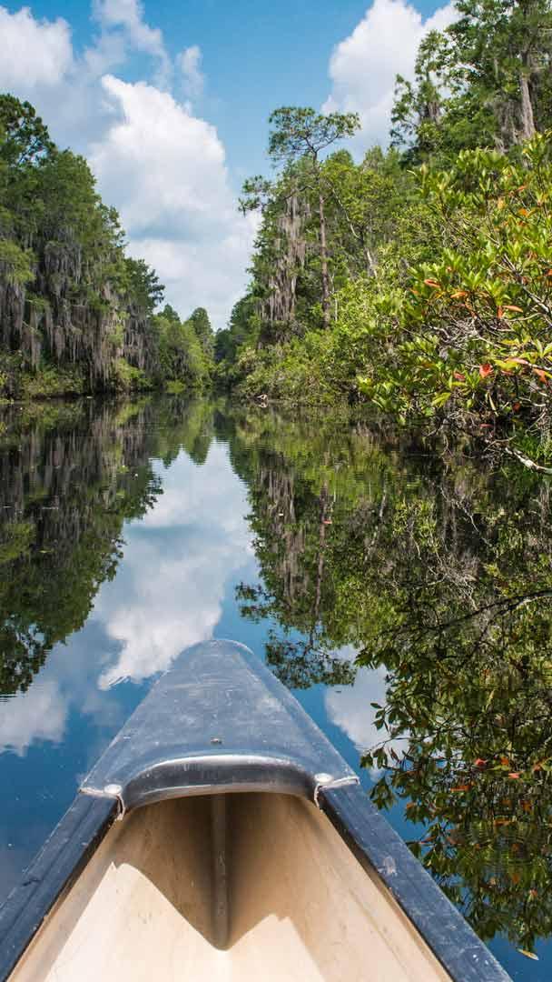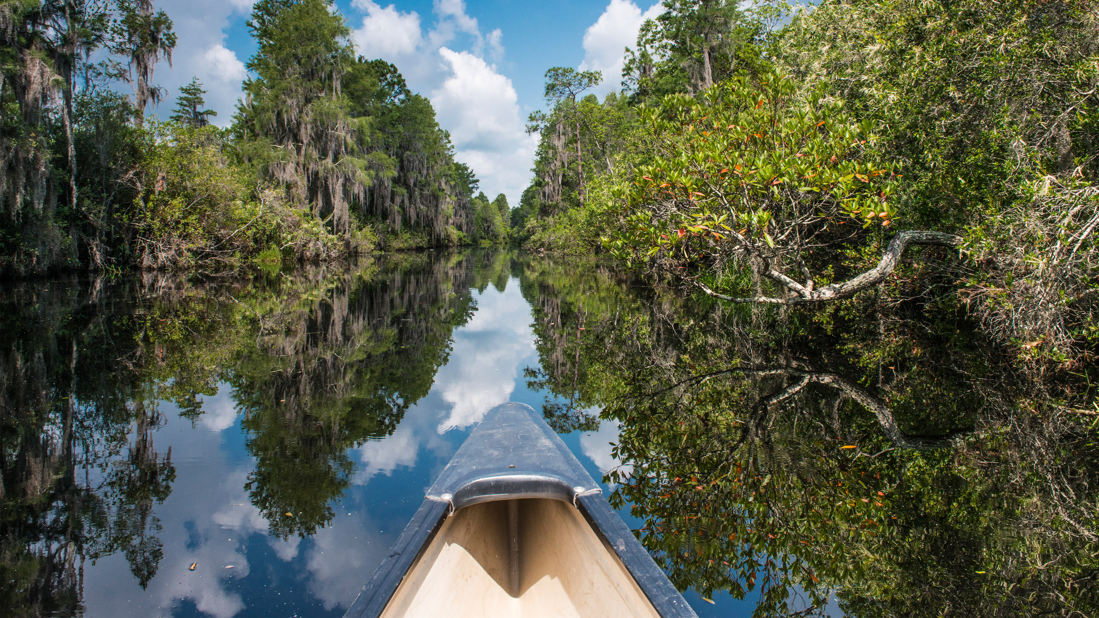 Acque serene su una "terra tremante" Pagaiare in canoa nellOkefenokee National Wildlife Refuge, Georgia (© Brad Beck/Tandem Stills + Motion)