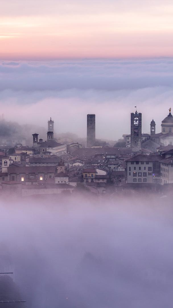 Befana in vista Città Alta di Bergamo avvolta dalla nebbia, Lombardia (© Gambarini Gianandrea/Shutterstock)