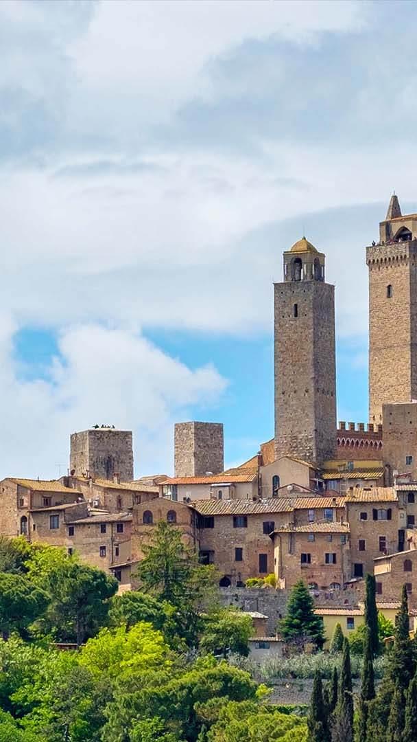 Maestose torri medievali Torri medievali a San Gimignano, Siena (© Jason Langley/Cavan Images)