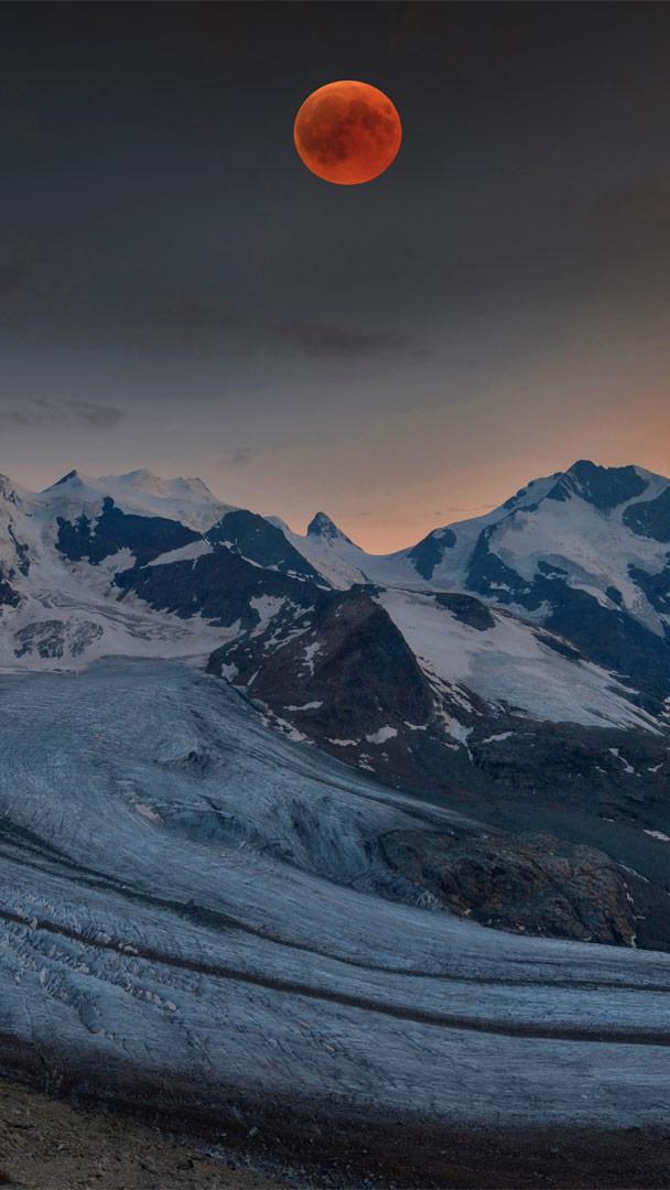 Preparati per la luna di sangue Massiccio del Bernina durante un’eclissi di luna, Alpi orientali, Engadina, Svizzera (© Bernd Zoller/Shutterstock)