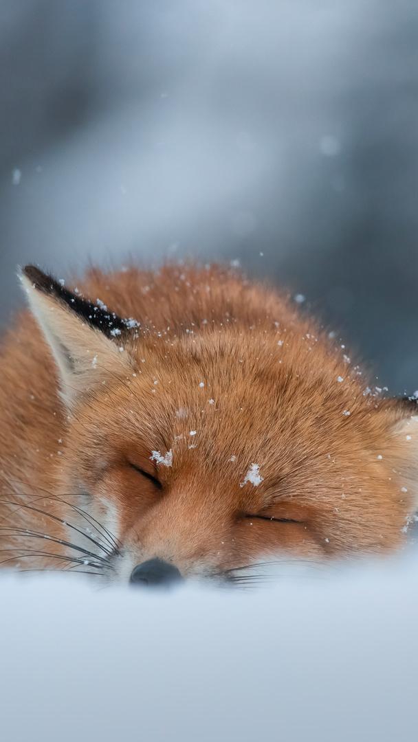 Cominciamo con lo spirito giusto! Volpe che sonnecchia nella neve, Abruzzo, Italia (© Marco Vancini/500px/Getty Images)