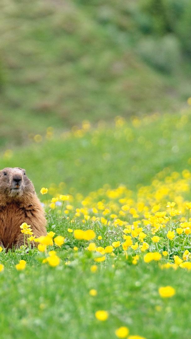 Phil vedrà la sua ombra? Marmotta che sbircia fuori dalla sua tana (© Scacciamosche/Getty Images)