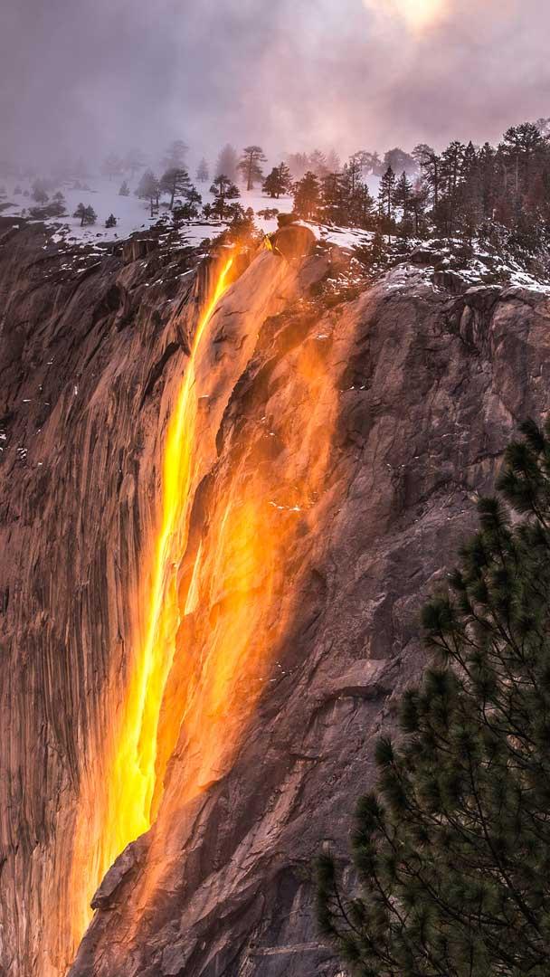 Una contraddizione naturale Cascata di fuoco a Horsetail Fall, Parco Nazionale dello Yosemite, California, USA (© Gregory B Cuvelier/Shutterstock)