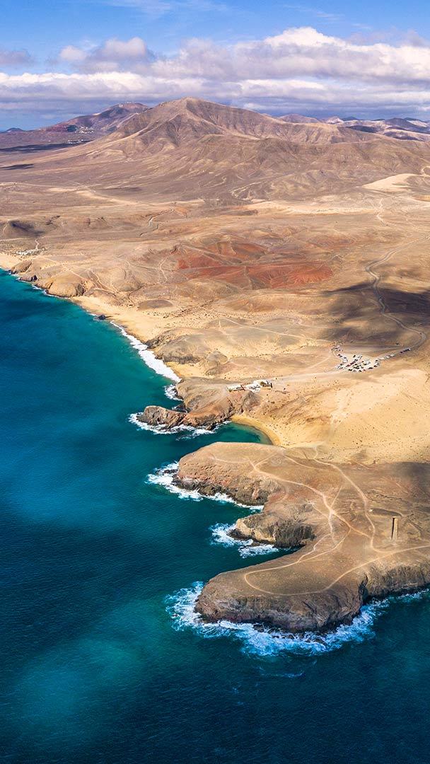 ここは、パパガヨビーチ。スペインのカナリア諸島に属するランサローテ島南部に位置します。ランサローテ島は長い火山活動の歴史を持ち、特に 18 世紀の噴火が現在の地形形成に大きく影響しました。そしてパパガヨビーチは、火山岩の断崖に囲まれており、それが防波堤になることで、波が和らげられ、ビーチには穏やかで透明度の高い海が広がります。黄金色の砂浜は、砕けた貝殻と火山岩が混ざり合ってできたもので、この島の成り立ちを感じさせます。