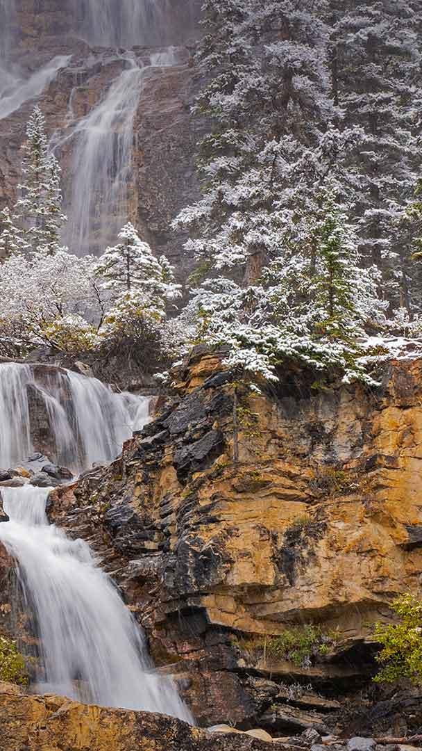 タングルクリーク滝 ジャスパー国立公園, カナダ アルバータ州 (© Jeff Foott/Minden Pictures)