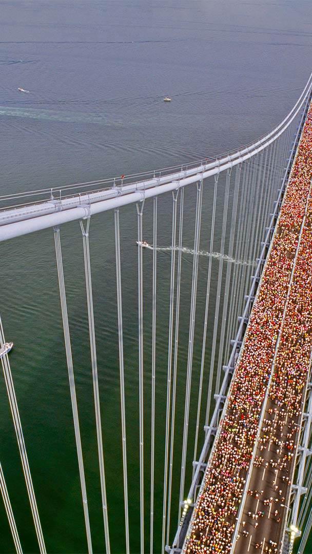 ニューヨークシティマラソン開催 ヴェラザノ=ナローズ橋, 米国 ニューヨーク (© David Madison/Getty Images)