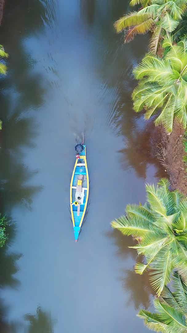 バックウォータークルーズ 運河を進むボート, インド ケーララ州 (© Shutterstock)