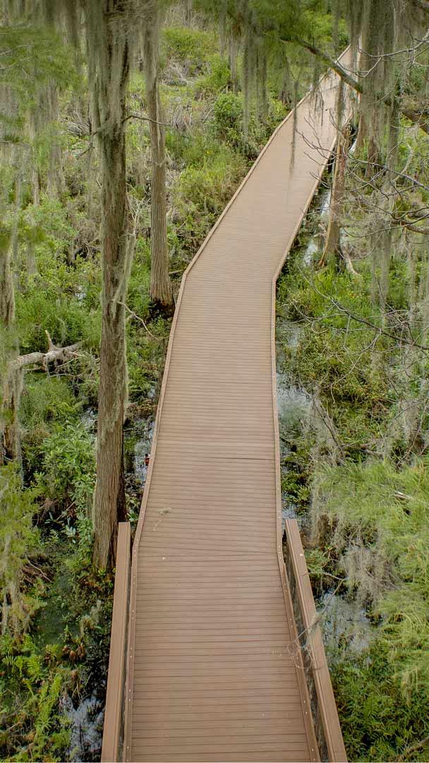 緑に囲まれた遊歩道 オケフェノキー湿原の遊歩道, 米国 ジョージア州 (© Emmer Photo/Alamy)
