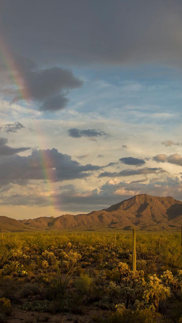 Welcome to Saguaro National Park in Arizona, United States. Today"s image features a rainbow over Wasson Peak, which is the tallest point in the Tucson Mountains at more than 1,400 metres. Hikers can reach the summit via trails like King Canyon, Hugh Norris or Sweetwater, all winding through towering saguaros, prickly pear cacti and desert wildflowers. At the top of the park, the Tucson Basin, Santa Catalina and Rincon Mountains stretch into the horizon, making the climb worth every step. Named after John Wasson, a 19th-century American journalist, the peak also holds traces of the Hohokam people and Arizona"s mining past, including the Gould Mine. Whether you"re here for the views, history, or challenge, Wasson Peak is a true desert adventure—just don"t underestimate the Arizona sun!