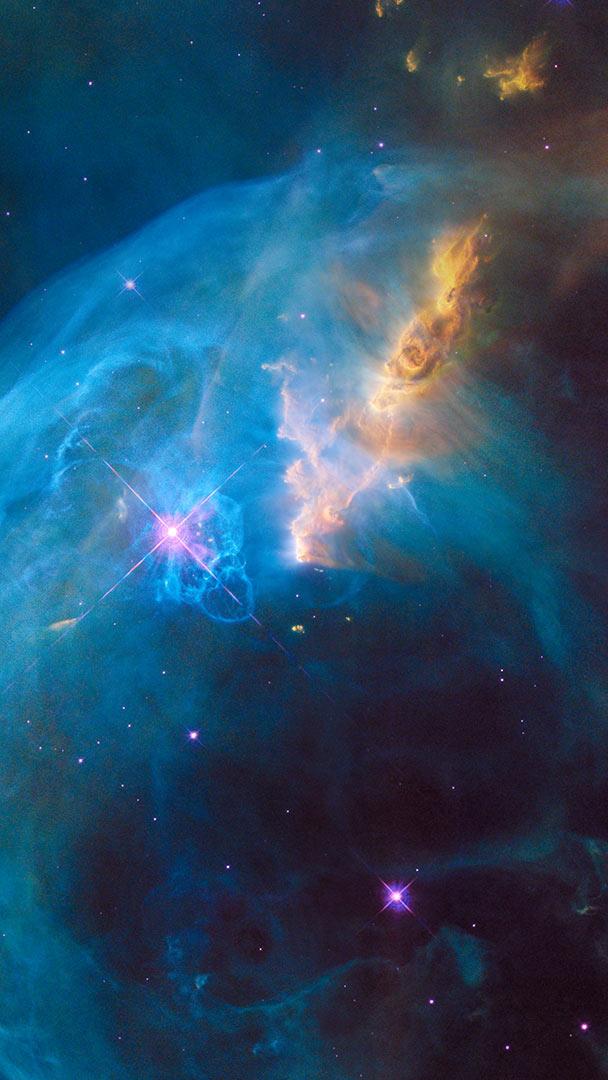 This giant space bubble is being blown by a massive star visible at the 10 o"clock position inside it. Already over 7 light-years across and expanding at a rate of over 4 million mph, the "bubble" is actually the shock wave created when expanding hot gas (or stellar wind) hits the cold, interstellar gas that surrounds it. The Bubble Nebula was discovered in 1787 by William Herschel. The star inside is living fast and will die young (for a star)—it will likely detonate as a supernova in only 10 to 20 million years. This image was taken in 2016 by the Hubble Space Telescope to mark the 26th anniversary of Hubble"s launch into Earth orbit by the STS-31 space shuttle crew. We"re showing it to mark the last day of World Space Week, an annual "international celebration of science and technology, and their contribution to the betterment of the human condition."