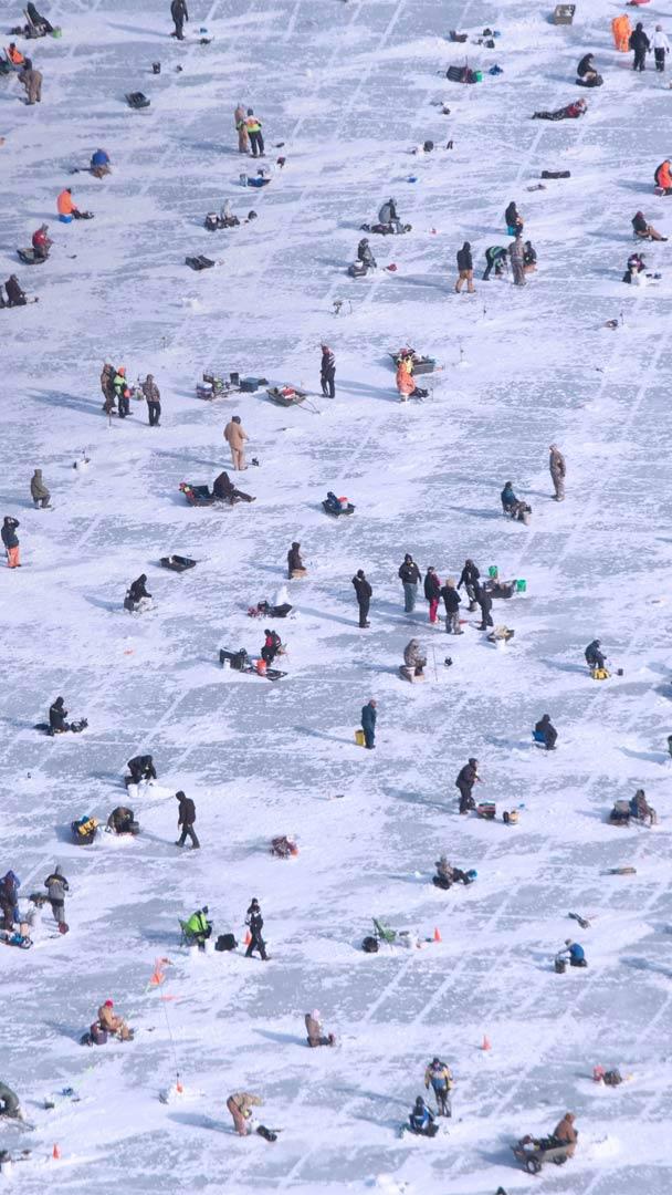 We’re just outside Brainerd, Minnesota, for the Ice Fishing Extravaganza on Gull Lake. Each year in late January, more than 10,000 people will come out to catch as many fish as they can—mostly walleye and northern pike, but all fish species are eligible. The contest is organized and run by volunteers exclusively, and 100 percent of the proceeds—around $150,000—goes to local charities.