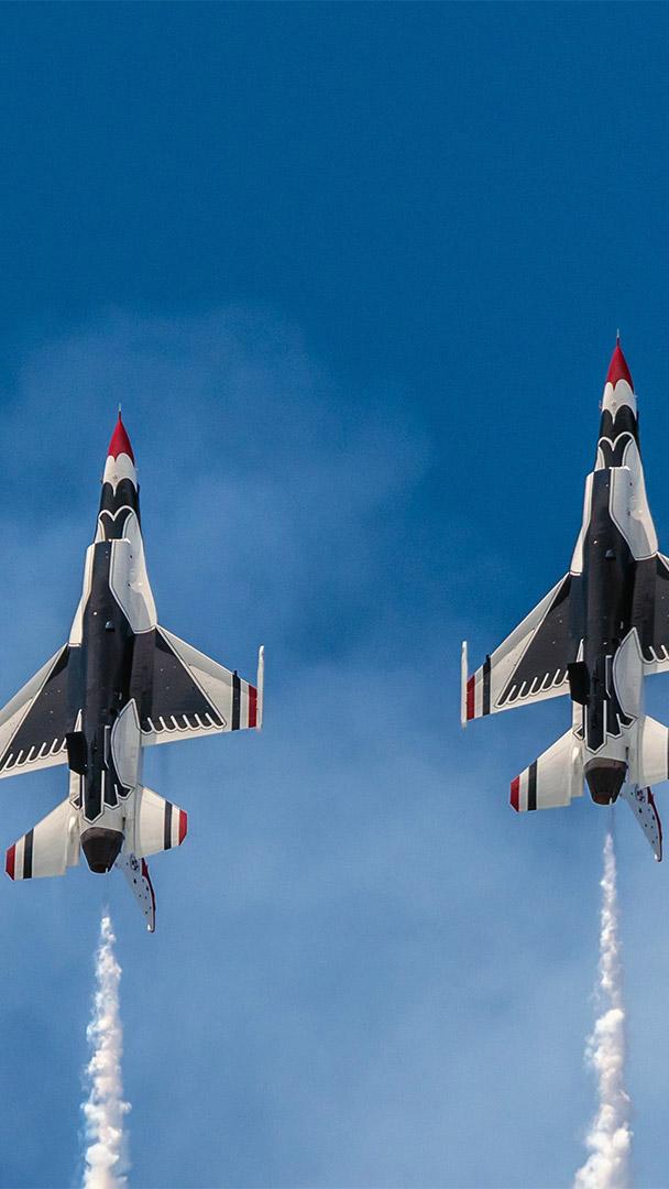 Since most large social gatherings have been postponed or canceled, we"re bringing the Armed Forces Day air show to you, courtesy of the US Air Force"s demonstration squadron, the Thunderbirds. In recent weeks, the Thunderbirds have joined with the Navy"s Blue Angels air squadron to conduct formation flights over several American cities as a salute to essential workers and health care personnel on the front lines of the COVID-19 pandemic. The two services are flying over some cities together and others separately. In a press release, Air Force Lt. Col. John Caldwell, the Thunderbird commander and lead pilot, said, "We are honored to fly over these cities in a display of national unity and support for the men and women keeping our communities safe."