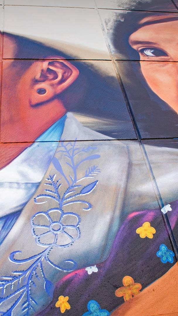 National Hispanic Heritage Month takes us to the Texas border town of El Paso, where artist Jesus "CIMI" Alvarado is pictured applying the final touches to the mural he calls "Fronterizos" (Border People). It was commissioned by the El Paso Museum of Art for one of its outside walls. Alvarado began his painting career as a graffiti artist, tagging the walls of the city"s historic Segundo Barrio, and today his work can be found throughout the city. This mural depicts a local musician, Johnny Barragan, with an unnamed woman, and is described as an ode to a hometown hero of El Paso.