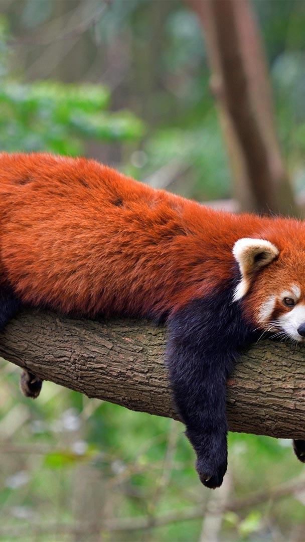 For International Red Panda Day, we"re hanging out on a tree limb with this cutie in the Chengdu Panda Base of Sichuan, China. If you spot a red panda in the wild, consider yourself lucky. Not only will you have to travel far (they live in the mountain forests of Nepal, Bhutan, China, Myanmar, and India), but there are fewer than 10,000 wild red pandas, and they"re rather elusive, hanging out up in trees. They also spend more than half their day asleep, conserving energy for—you guessed it—eating bamboo leaves. They spend a whopping 13 hours a day eating.